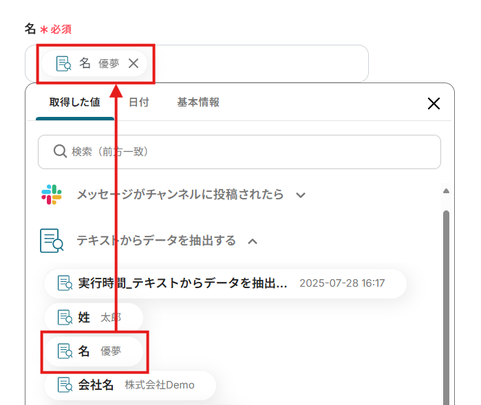 この自動化はAIや正規表現によるデータ抽出処理を含むため、非構造化データであるSlackの投稿からも必要な情報を正確に抜き出して連携させることが可能です!