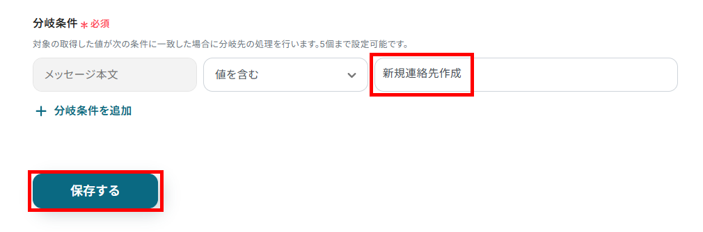 今回は、「新規連絡先作成」を特定のキーワードとして入力しました。