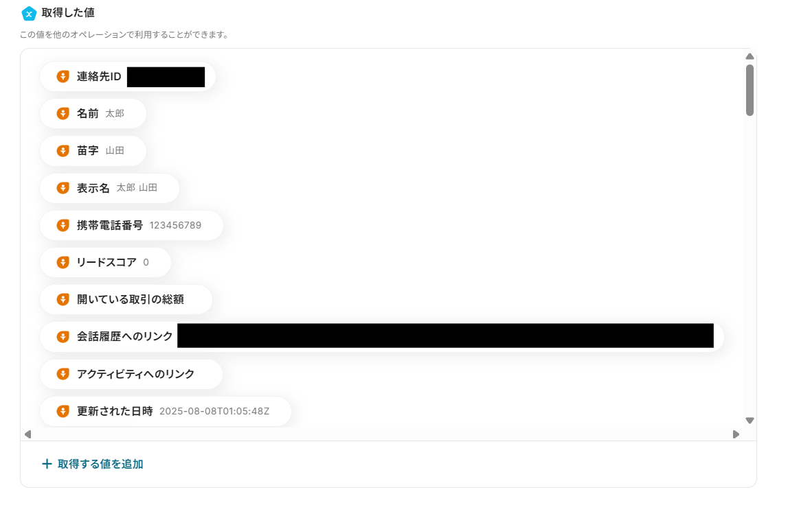 オペレーションと取得した値は、あらかじめテンプレートで設定されています。