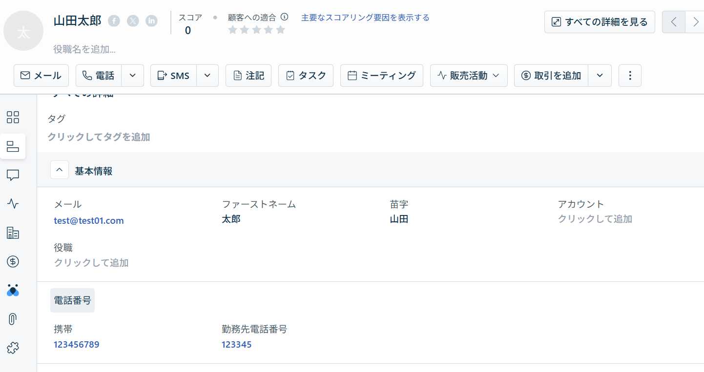基本情報(氏名、電話番号、メールアドレスなど)に加えて、住所、役職、メディア情報なども連携可能です!