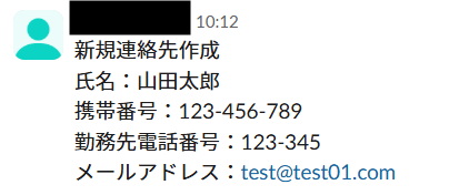 Slackの特定チャンネルに投稿された顧客情報を、自動でFreshsalesに新しい連絡先として登録する連携です。