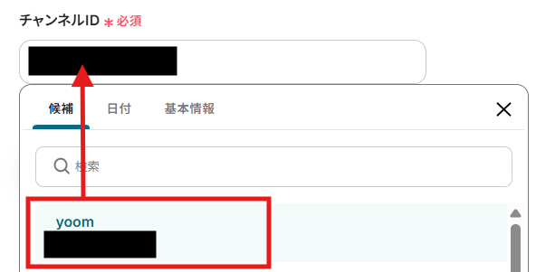 ※対象にするチャンネルには、Yoomのアプリが追加されている必要があります。(チャンネルにYoomのアプリを追加する方法)