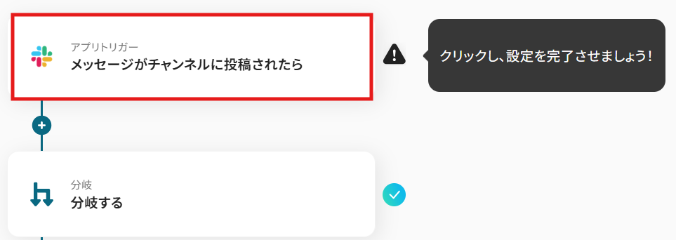 ここでの設定により、Slackにメッセージが投稿されると、フローボットが起動します。