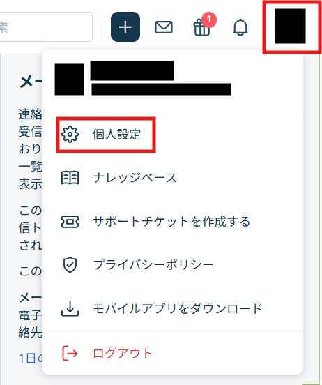 Freshsalesにログインし、右上の人物アイコンから「個人設定」を選択してください。