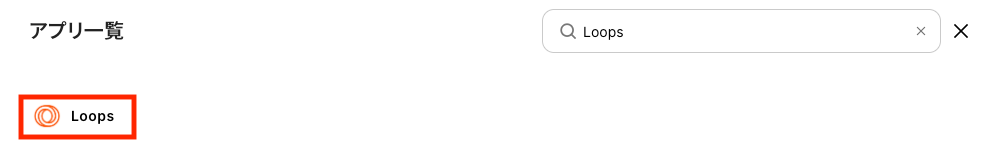 新規接続をクリックしたあと、アプリのメニュー一覧が表示されるのでLoopsと検索し対象アプリをクリックしてください。