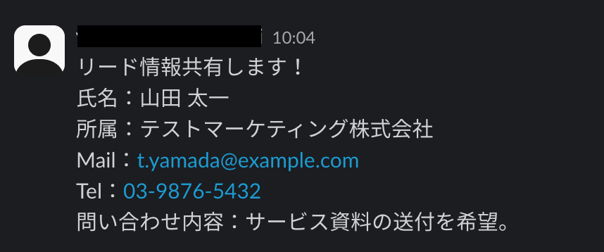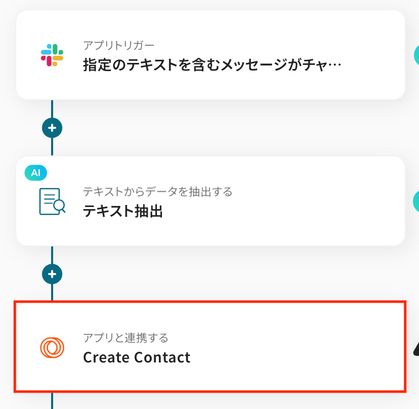 このフローは、Slackのメッセージから必要な情報だけを抽出して登録する処理を含むため、問い合わせやリード情報を手動で転記する手間を削減し、入力ミスや対応漏れを防ぐことができます。