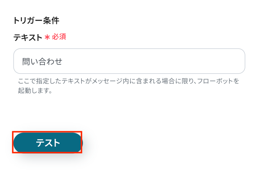 入力が完了したら、設定内容とトリガーの動作を確認するため「テスト」をクリックします。