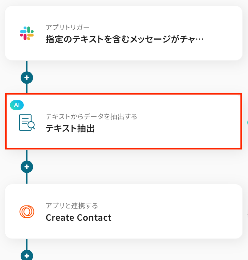 トリガーで取得したメッセージ内容をもとに、AIで特定のテキストを抽出します。