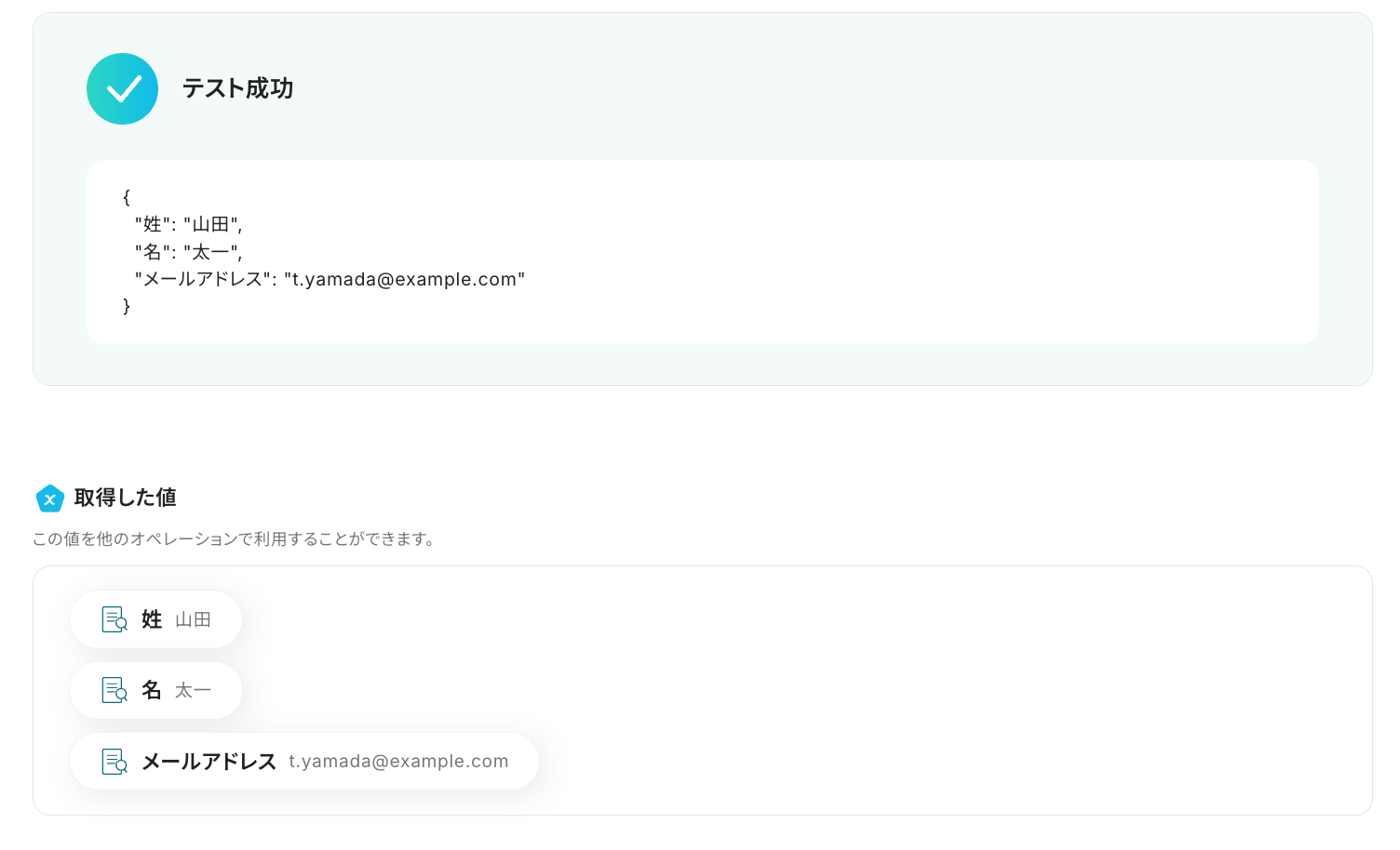 以下の画像の取得した値は、この後のステップで利用できます。