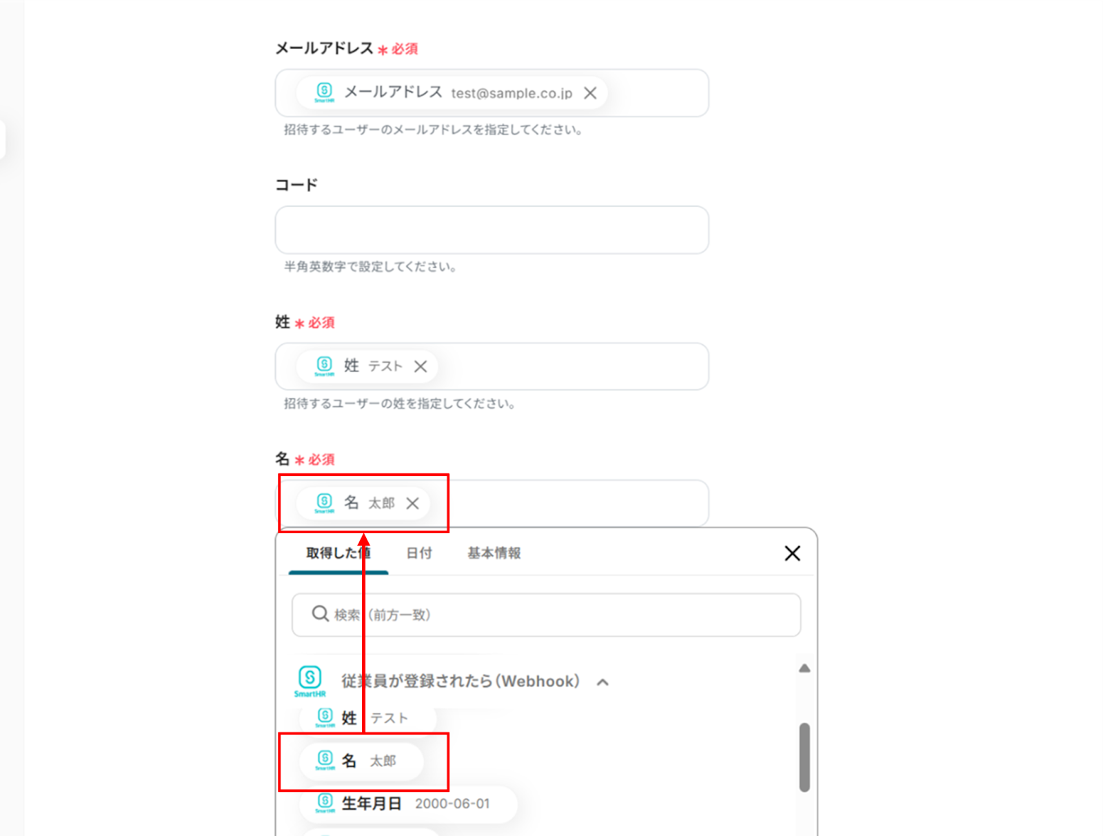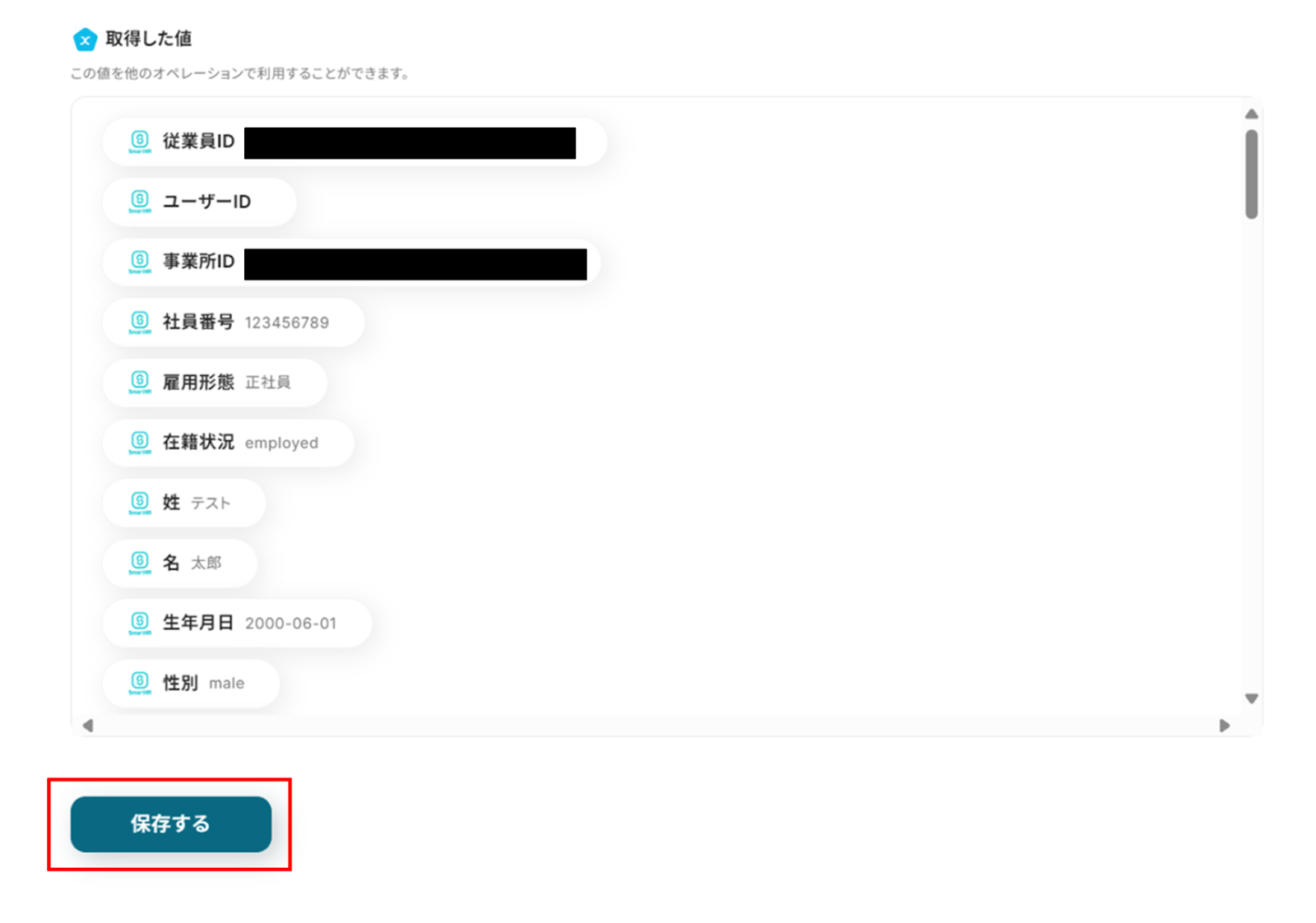 「取得した値」にSmartHRの情報が反映されればテスト成功です。
