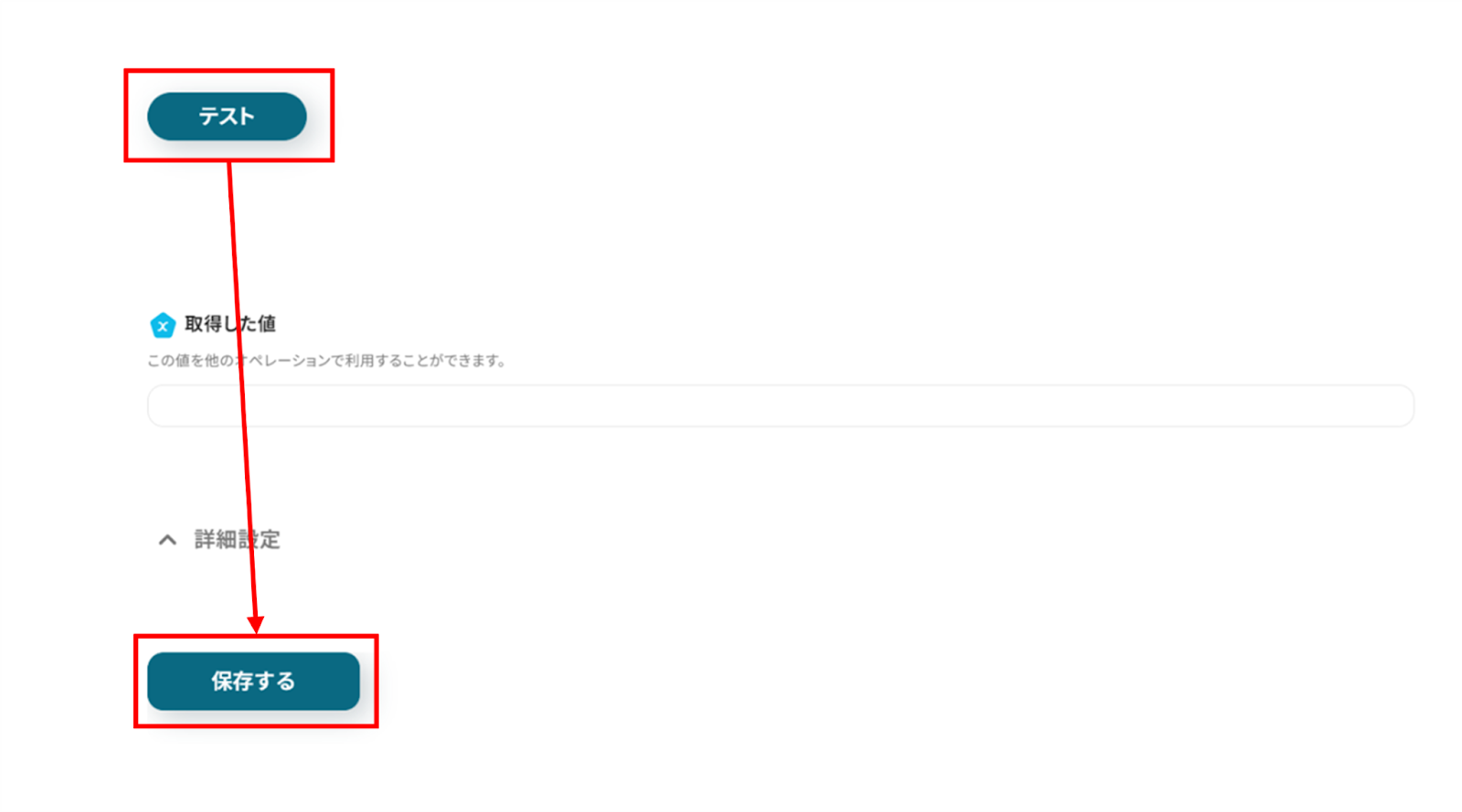 入力が終わったら「テスト」をクリックし、エラーが発生しなければ「保存する」をクリックします。