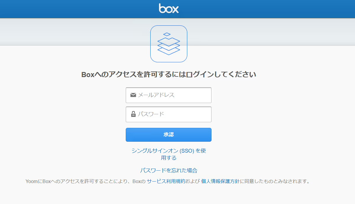 Boxの連携 検索ボックスにBoxと入力し、対象のアイコンをクリックします。