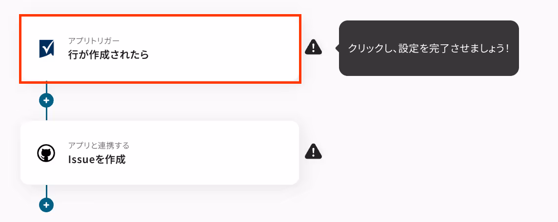 続いて、Smartsheetに作成された行の情報を使って、GitHubにIssueを自動作成する設定を行います。