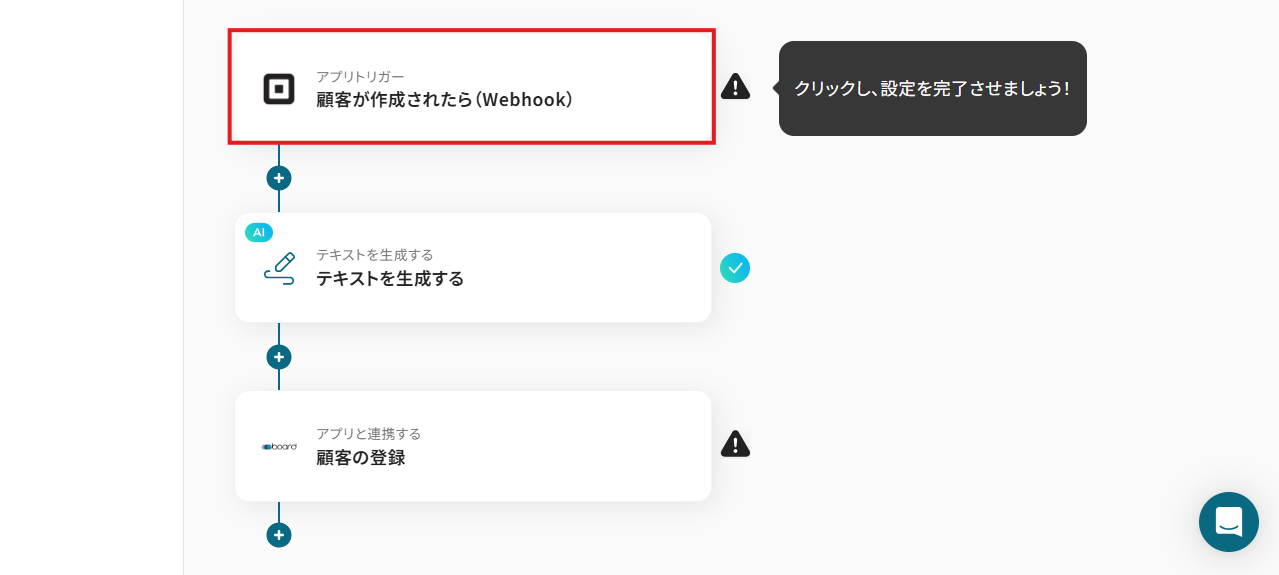 このワークフローは、そうした課題を解決するために設計されており、Squareへの顧客登録をきっかけに、boardへの顧客情報追加を自動化します。