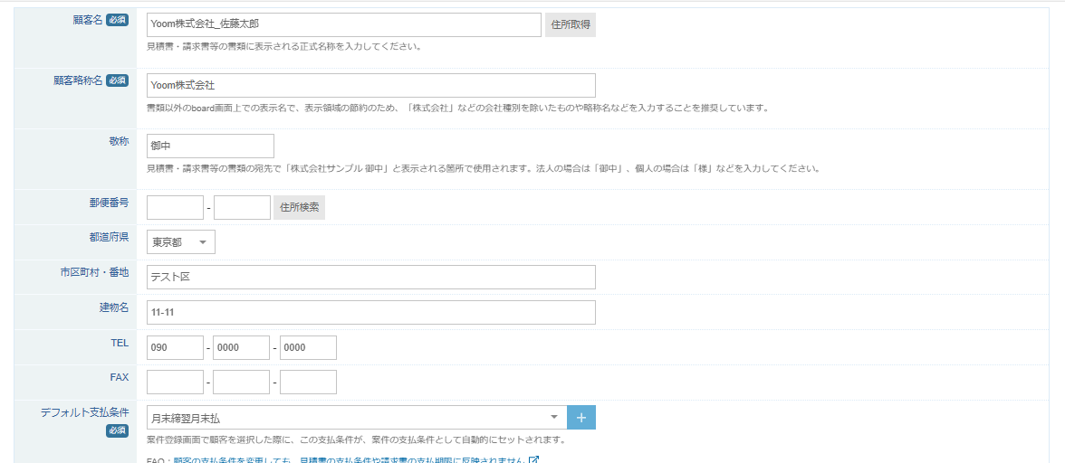 テストが成功すると、boardに顧客が自動で作成されるので確認しましょう。