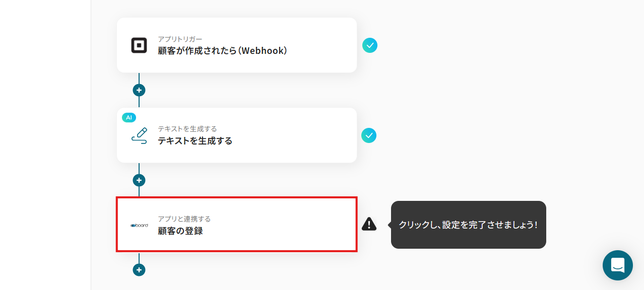 これで、「Squareで顧客が登録されたら、boardにも顧客を追加する」フローの完成です!