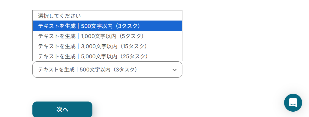 今回は、電話番号を抽出するだけなので、一番少ない「500文字以内」で問題無いでしょう。