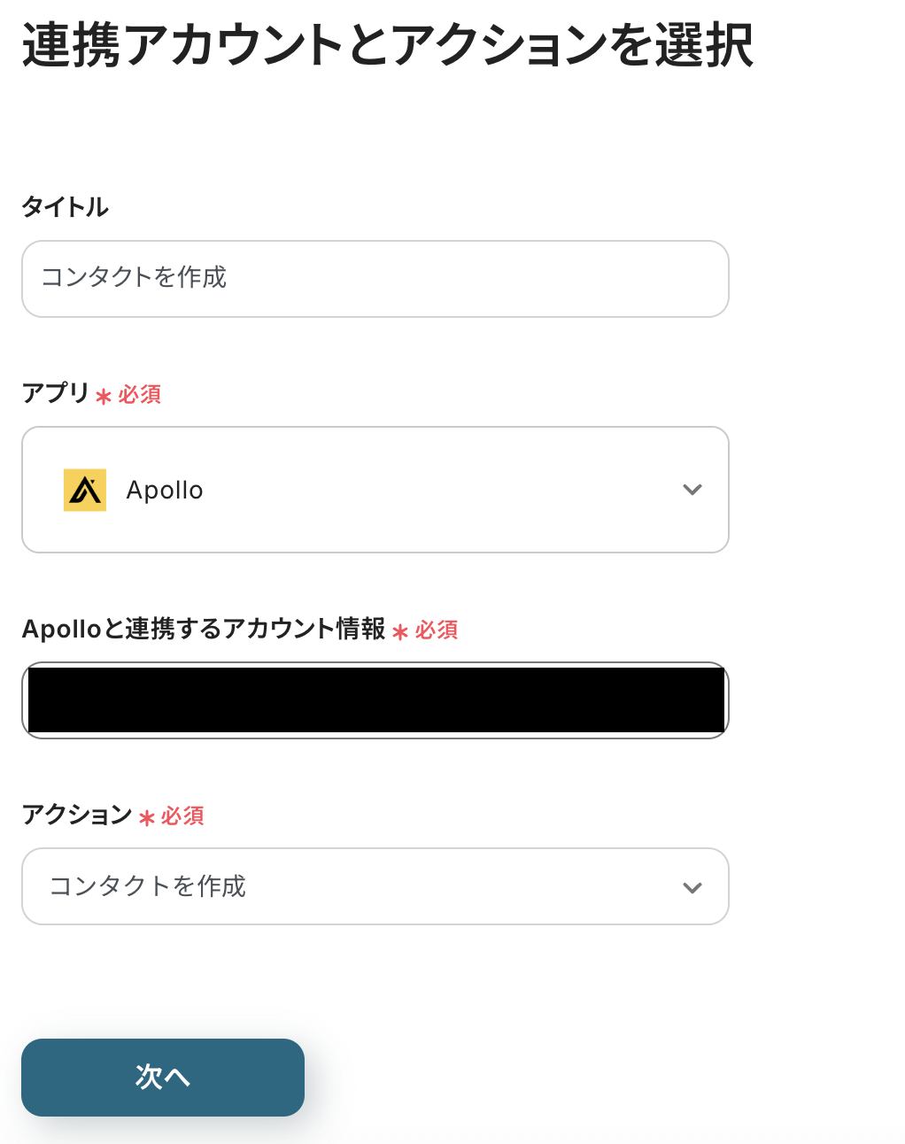 ステップ4:Apolloにコンタクトを作成するアクションを設定しよう