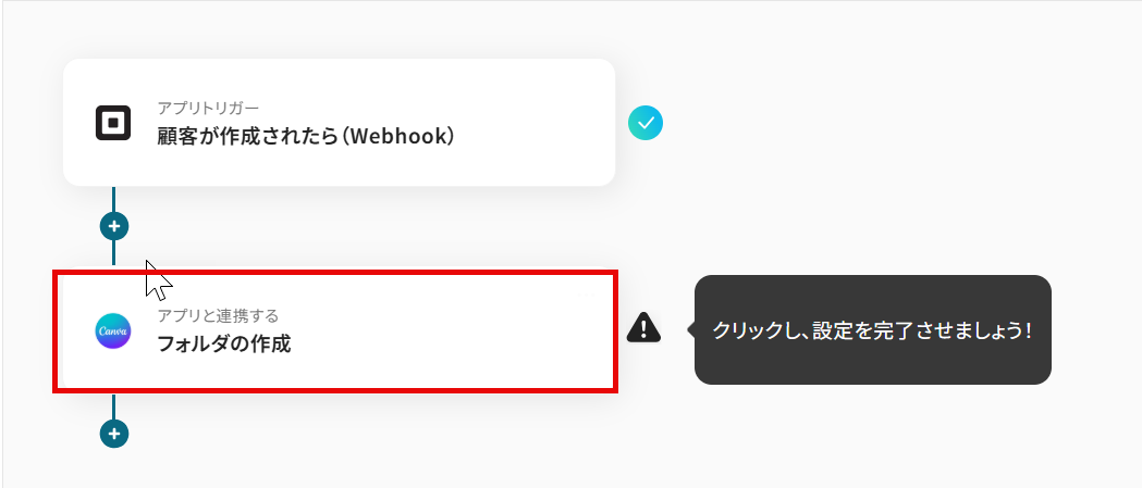 このワークフローは、Squareに特定の顧客情報が作成されたことをトリガーに、自動でCanvaに専用フォルダを作成します。