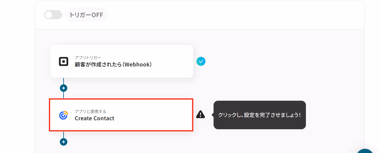 Squareアイコンの「顧客が作成されたら(Webhook)」ボタンを押してください。