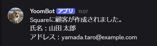 Squareから取得した値を利用することで、顧客ごとに変わる情報を変数としてDiscordへ通知できます。