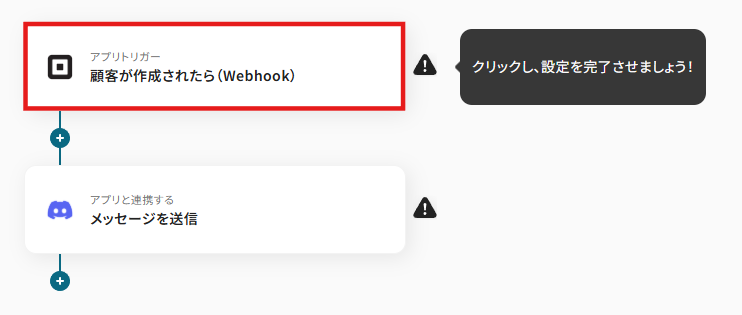 Squareで顧客情報が作成されたことを自動化のトリガーにするための設定を行います。