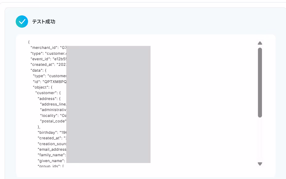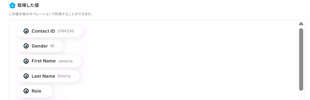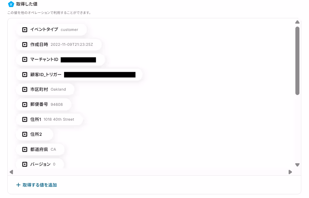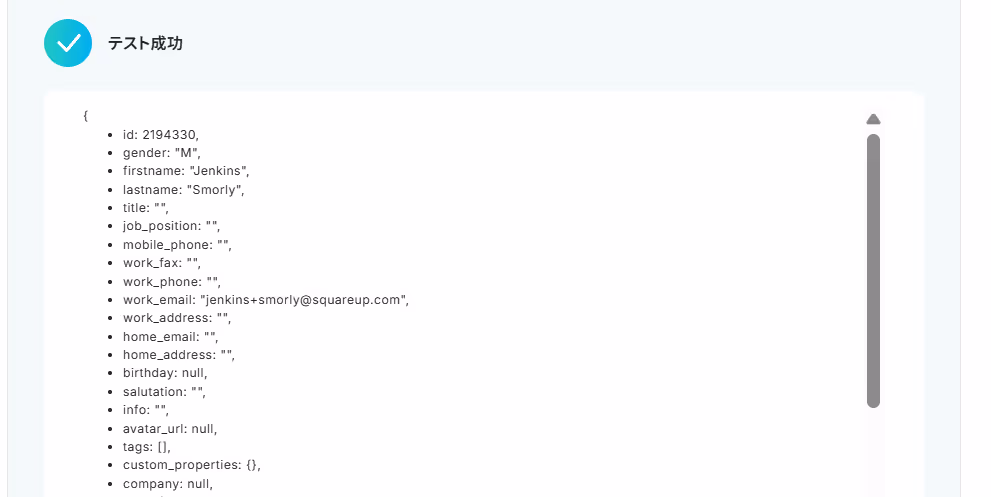 5.テストが成功した場合は、取得した値にデータが反映されます。
