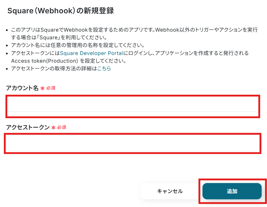※Squareではなく、Square(Webhook)のマイアプリ連携を行ってください。