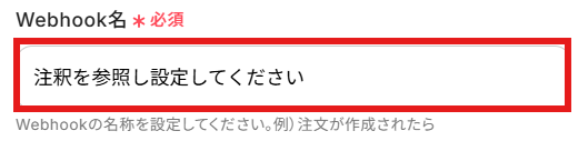 「Webhook名」を注釈に沿って手動で入力しましょう。