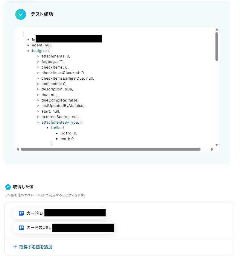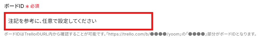 - ・Trelloで「新しいカードを作成する」アクションを設定する際に、カードを追加したいボードIDとリストIDを任意で設定してください。