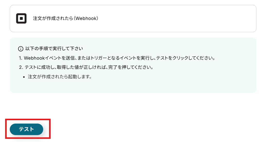 - 次に、トリガーでSquare Webhookを選択し、「注文が作成されたら(Webhook)」というアクションを設定します