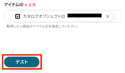 アイテムIDには、ステップ3で取得した値が自動で入力されています。