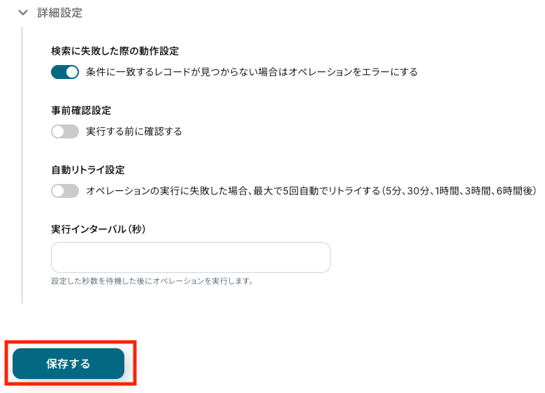 必要に応じて詳細設定を行い、保存して次のステップに進みましょう。