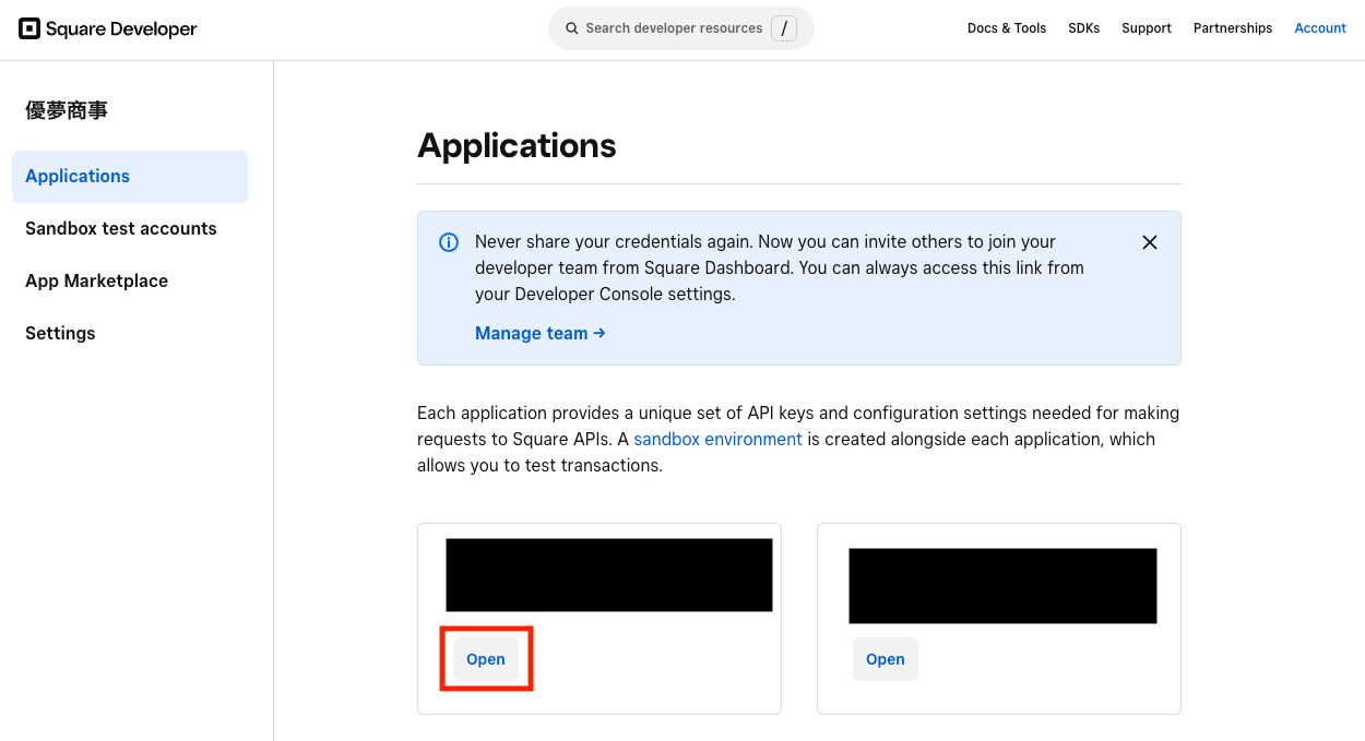 新規登録画面が表示されたら、「Square Developer Portal」をクリックします。