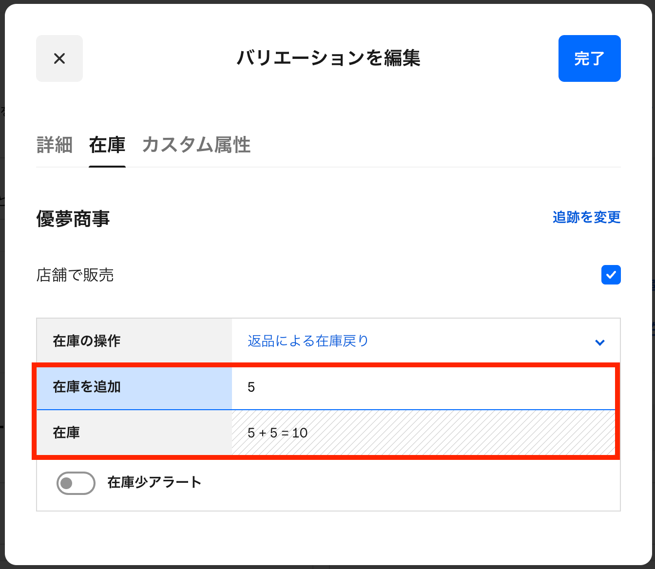 ここでSquareを開き、テスト用商品の在庫数を変更します。