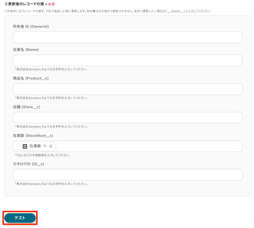 注意点として、値を設定する際はSalesforceの入力形式に沿って入力するようにしましょう。