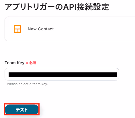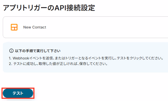 トリガーアクションが「New Contact」になっていることを確認して「次へ」をクリックします。