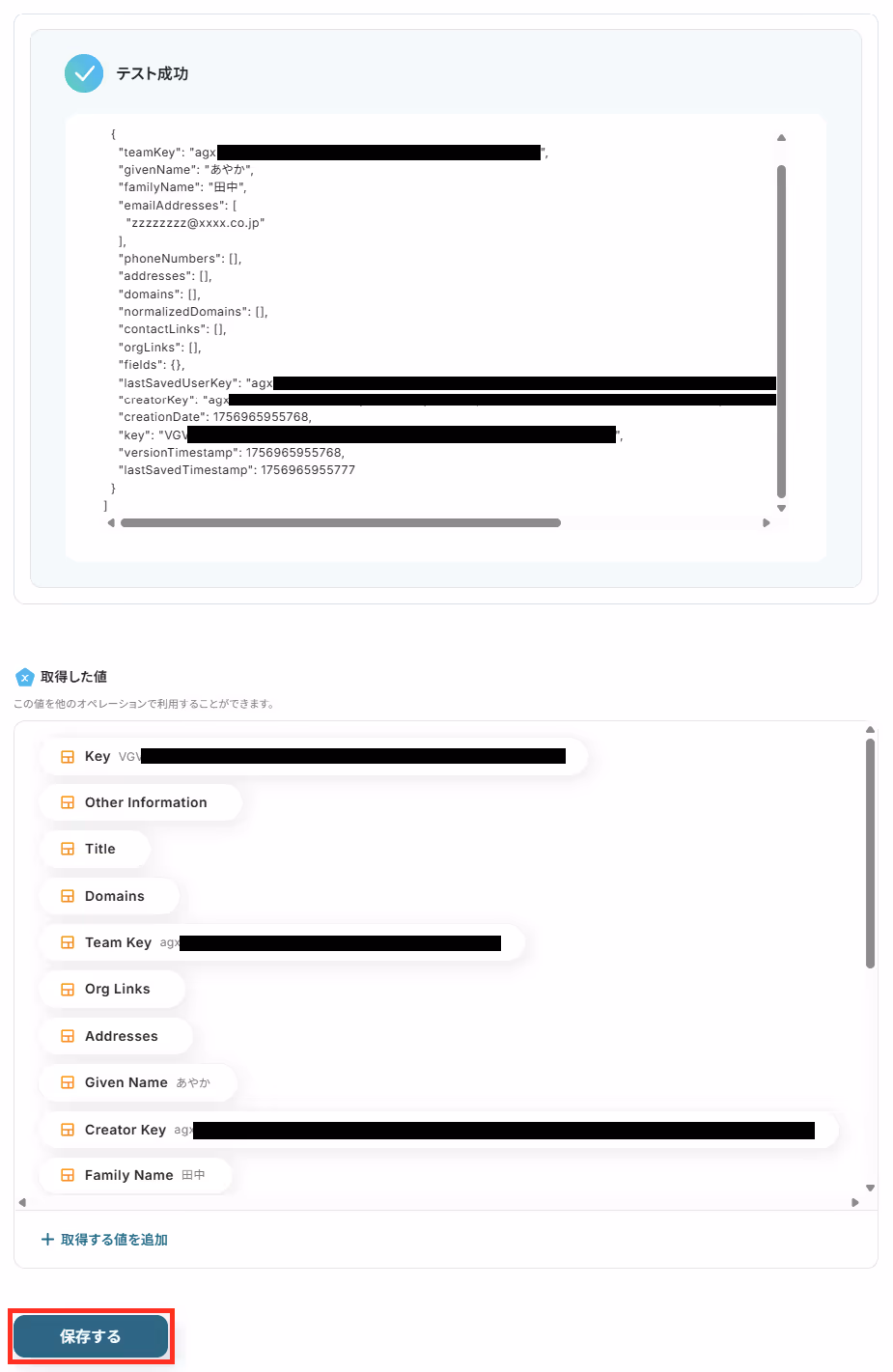 テストが成功すると、Streakで追加した情報が取得されるので、確認したら保存してください。