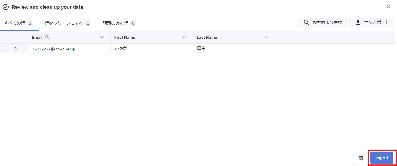 マッピング先が正しいか確認して、「インポート」をクリックしてください。