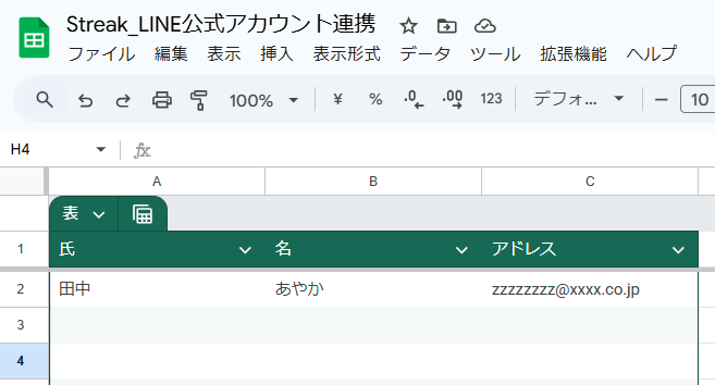 今回は、以下画像のようなスプレッドシートを用意しました。