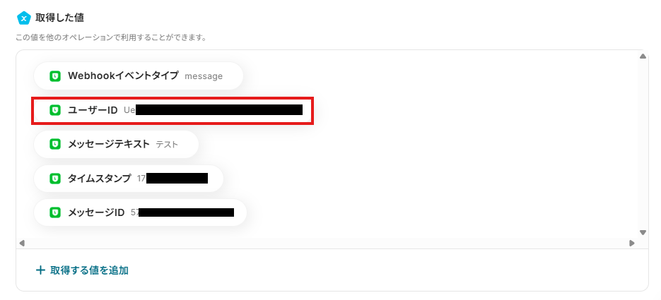 取得した値ではなく、手入力で設定してしまうと、同じ内容を繰り返しLINE公式アカウントに配信することになります。