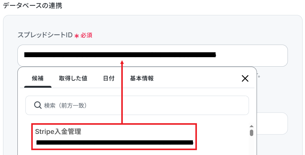 次に、先ほど用意したシートのスプレッドシートIDを候補から選択しましょう。