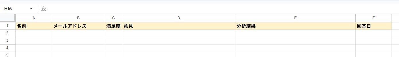 フローの作成を始める前に、あらかじめデータを追加するデータベースをGoogle スプレッドシートに作成しておきましょう!