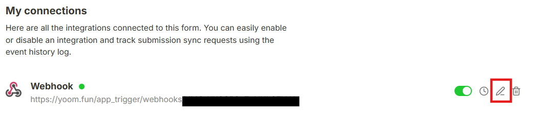 5.鉛筆マークをクリックし、先ほどYoomでコピーしたWebhookURLを貼り付けてください。