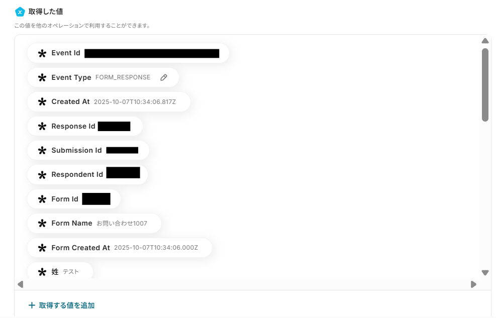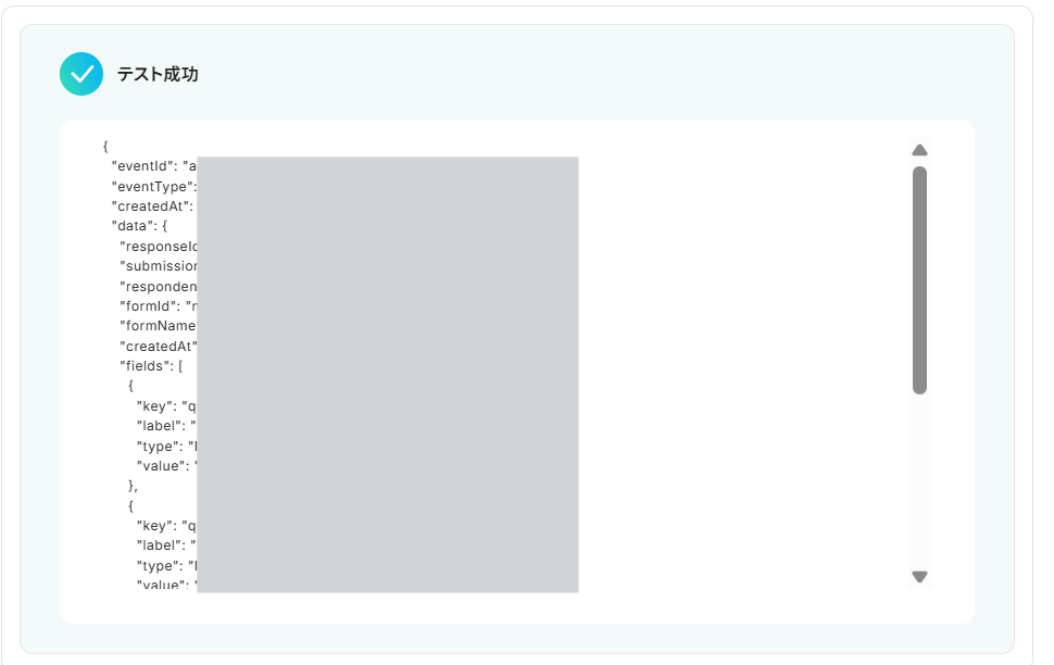 設定できたら、実際にTallyでフォーム回答を行い、フローボットに戻ります。