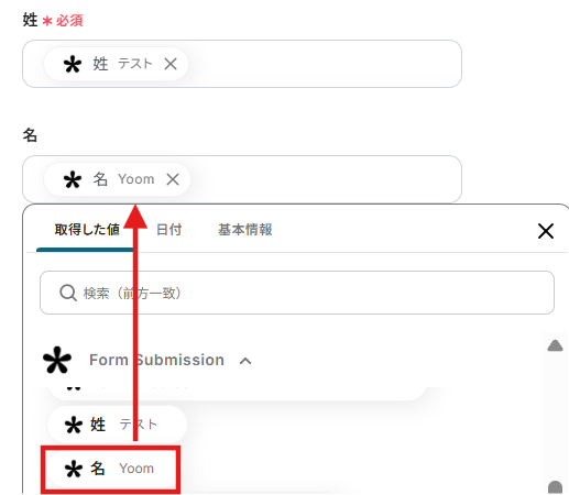 3.続いて、先ほどの取得した値からそれぞれ選択します。