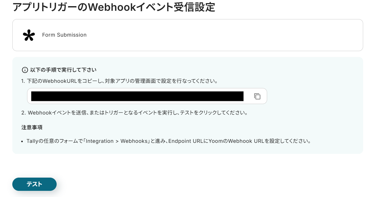 TallyのWebhookの設定について、詳しくはTally公式ヘルプで詳しく紹介されています。