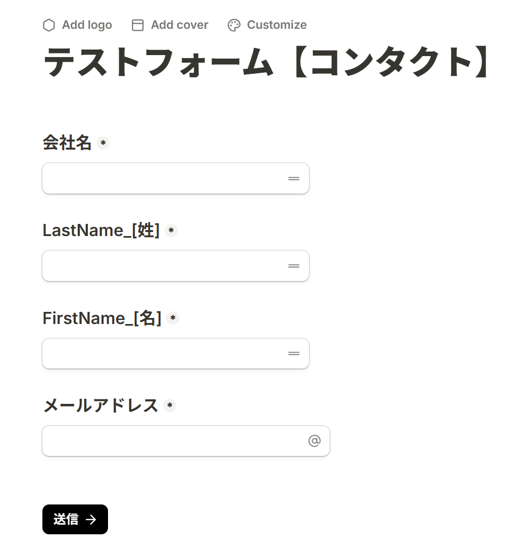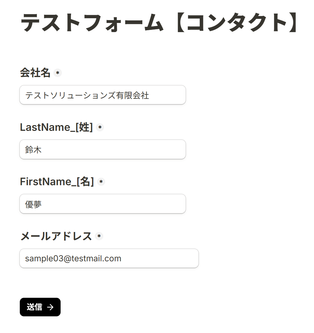 なお、今回はテストのため以下のようなテスト用のフォームを事前に作成しています。