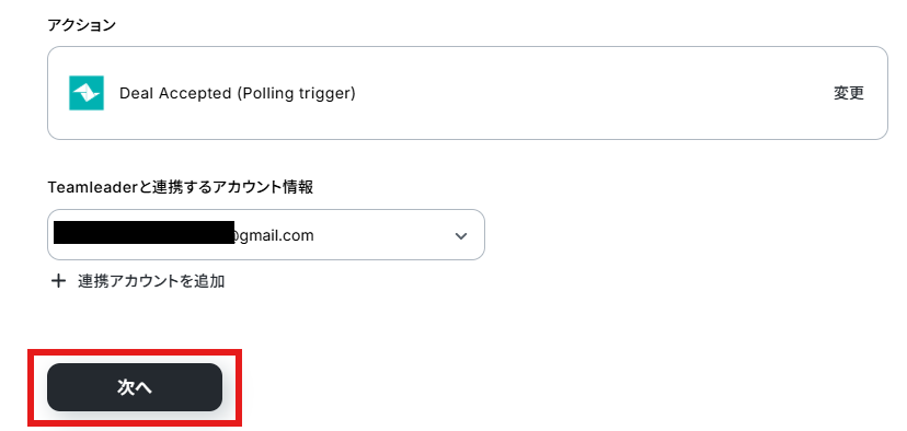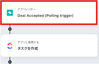 - 次に、トリガーでTeamleaderを選択し、「 Deal Accepted (Polling trigger) 」というアクションを設定します
