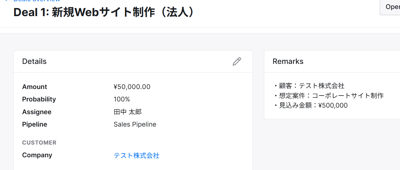 ここで以下のように、TeamleaderでDealを作成し、承認しておきます。
